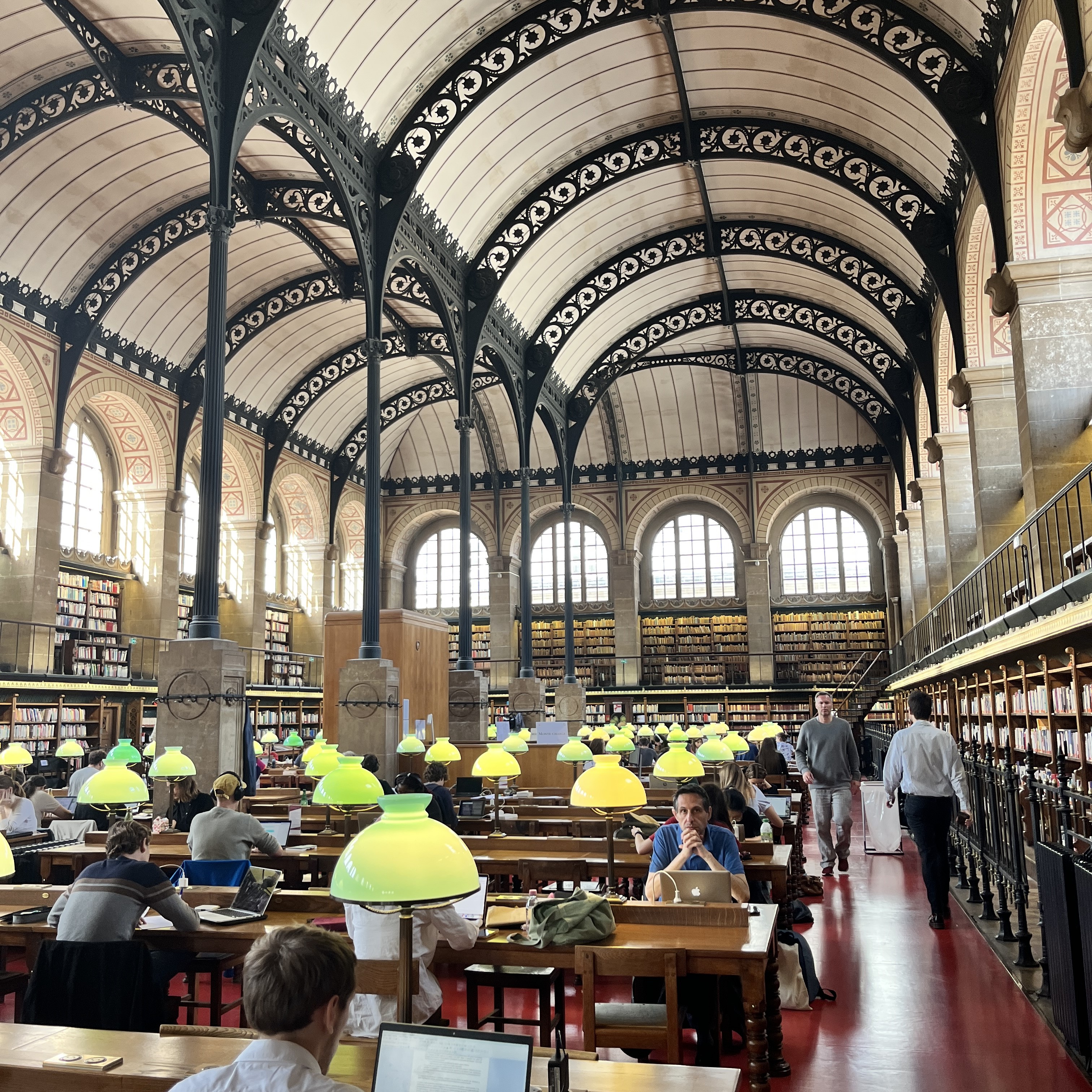 파리의 도서관을 찾아보다가 마치 해리포터 영화에 나올 법한 멋진 내부의 모습에 반해서 꼭 가봐야겠다는 생각이 든 도서관이다. 도서관 이용을 위해서는 홈페이지에서 온라인 회원 가입을 하고 여권을 지참해서 현장에서 회원 카드를 만들어야 한다. 홈페이지는 불어로만 되어 있기 때문에 브라우저의 영어 번역 기능을 이용하도록 하자. 개관 시간에 맞춰 도착하면 도서관 앞으로 줄이 길게 늘어서 있다. 이 줄은 회원 카드를 만들기 위한 줄이 아니라 도서관 투어를 하기 위해 기다리고 있는 사람들의 줄이니 (도서관 투어만을 위해서도 사전 예약이 필요함) 경비원에게 회원 카드를 만들기 위해서 왔다고 말을 하면 회원 등록을 위해 들여보내준다.