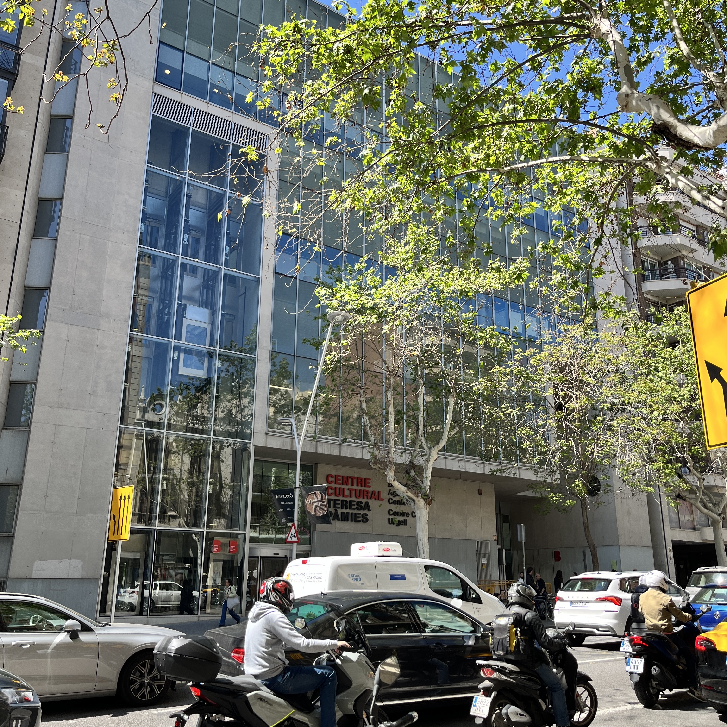 바르셀로나 의과 대학 뒤편에 위치한 이 도서관은 Centre Cultural Teresa Pàmies라는 이름의 문화센터 건물에 자리 잡고 있다. 건물에 들어가 엘리베이터를 타고 3층에 도착하면 도서관 입구가 나온다. 3층에는 아이들을 위한 도서관과 인포 데스크가 있다. 더 안으로 들어가 내부에 있는 계단을 이용하면 4층부터 6층까지 도서관 시설을 이용할 수 있다. 특별한 열람실 이용 절차가 없어 외국인도 편하게 이용할 수 있는 점이 좋았다.