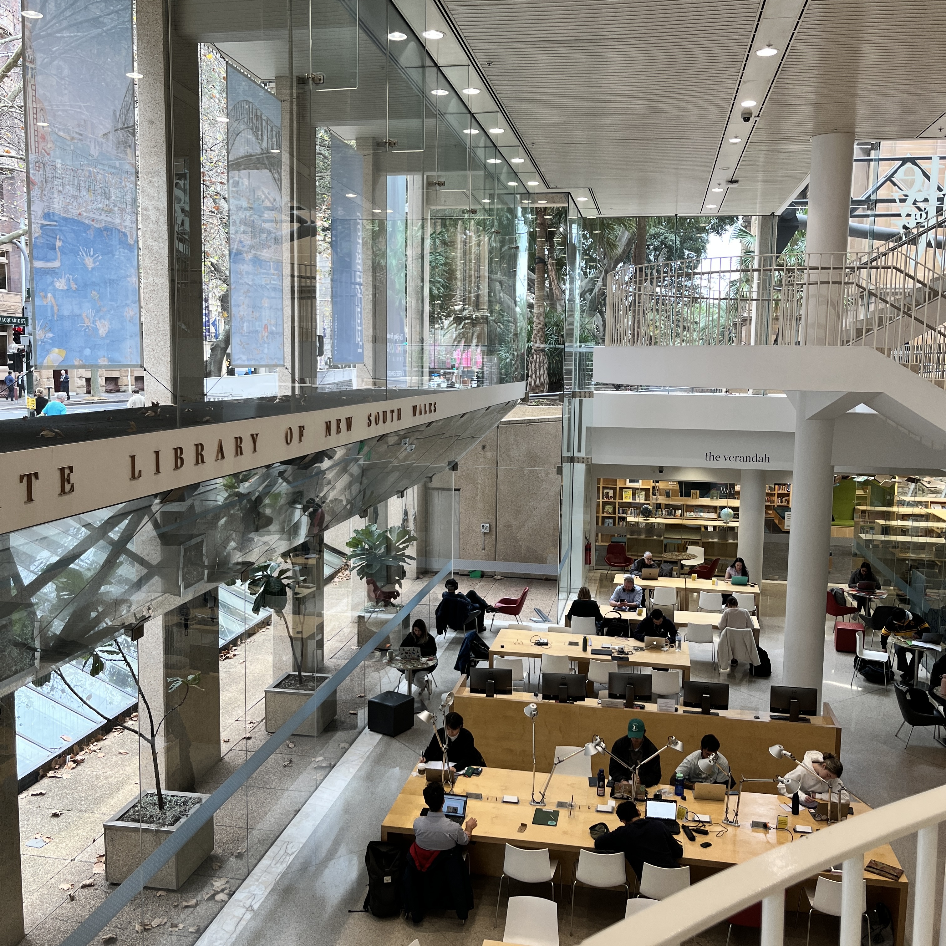 뉴사우스웨일스 주립 도서관은 호주에서 가장 역사가 오래된 도서관이다. 도서관은 두 개의 건물이 이어져 있는 형태인데 각 건물마다 열람실이 있다. 하나는 Mitchell Building 1층에 있는 Mitchell Library Reading Room이고, 다른 하나는 Macquarie St Buliding 지하 1층과 지하 2층에 있는 Gov. Marie Bashir Reading Room이다.