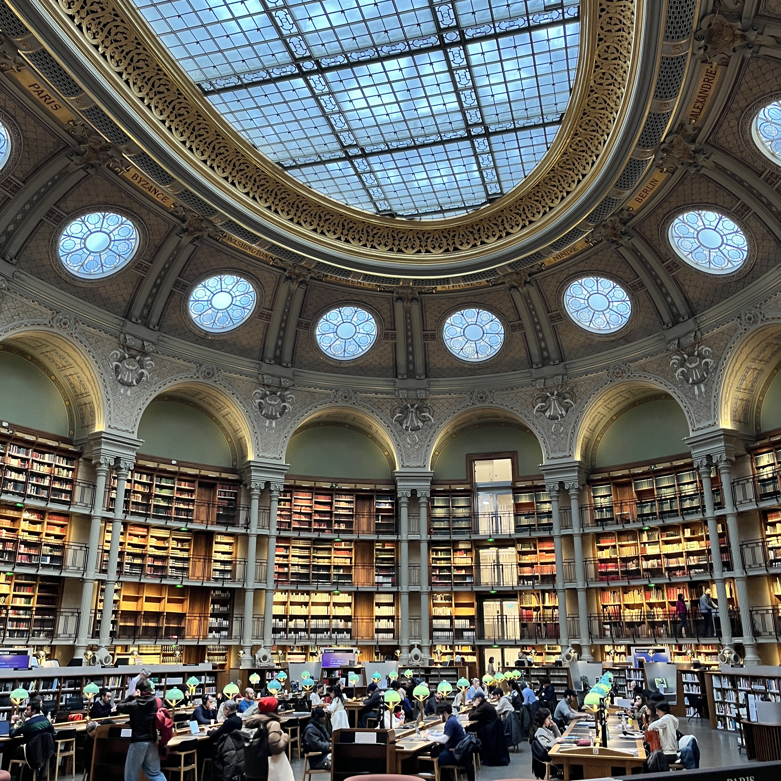 사진으로 담을 수 없을 정도의 웅장함을 자랑하는 Oval Room은 정말 멋진 곳이었다. 컴퓨터 사용이 가능한 책상, 일반 책상, 소파와 간이 탁자 등으로 이루어진 공간의 사방으로는 여러 종류의 책이 빼곡히 꽂혀 있었다. 천장은 통째로 타원형 유리로 된 구조라 자연광을 듬뿍 받을 수 있게 하였으나 역시 날이 흐려 그 모습을 담을 순 없었다. 대신 을씨년스러운 바깥 날씨와 대조적으로 전구색 등으로 불을 밝히는 도서관 내부의 따스한 분위기를 느낄 수 있었다. 10시가 조금 넘은 시간에 도착했음에도 자리가 거의 가득 차 있었다. 만약 단순히 구경만 하는 것이 아니라 책상에 앉아 시간을 보내고 싶다면 개관 시간에 맞춰서 가는 것을 추천한다. 또한 책상의 맨 앞 열은 장애인석이므로 비어있다고 무턱대고 앉지 않도록 조심하자. 나는 도서관 중앙에 빈 좌석을 찾아 자리를 잡고 잠시 아무것도 하지 않고 이 공간이 주는 즐거움을 누렸다.