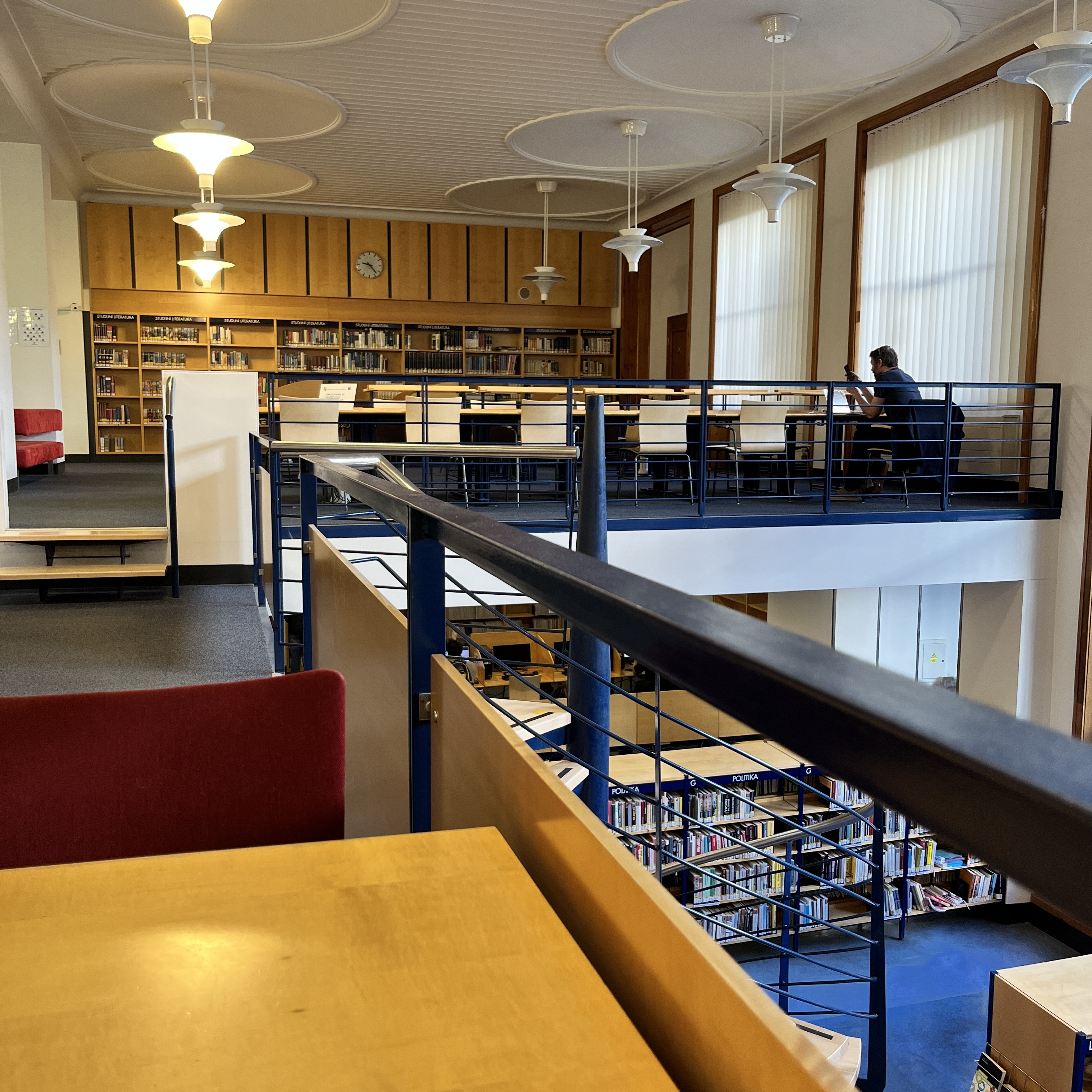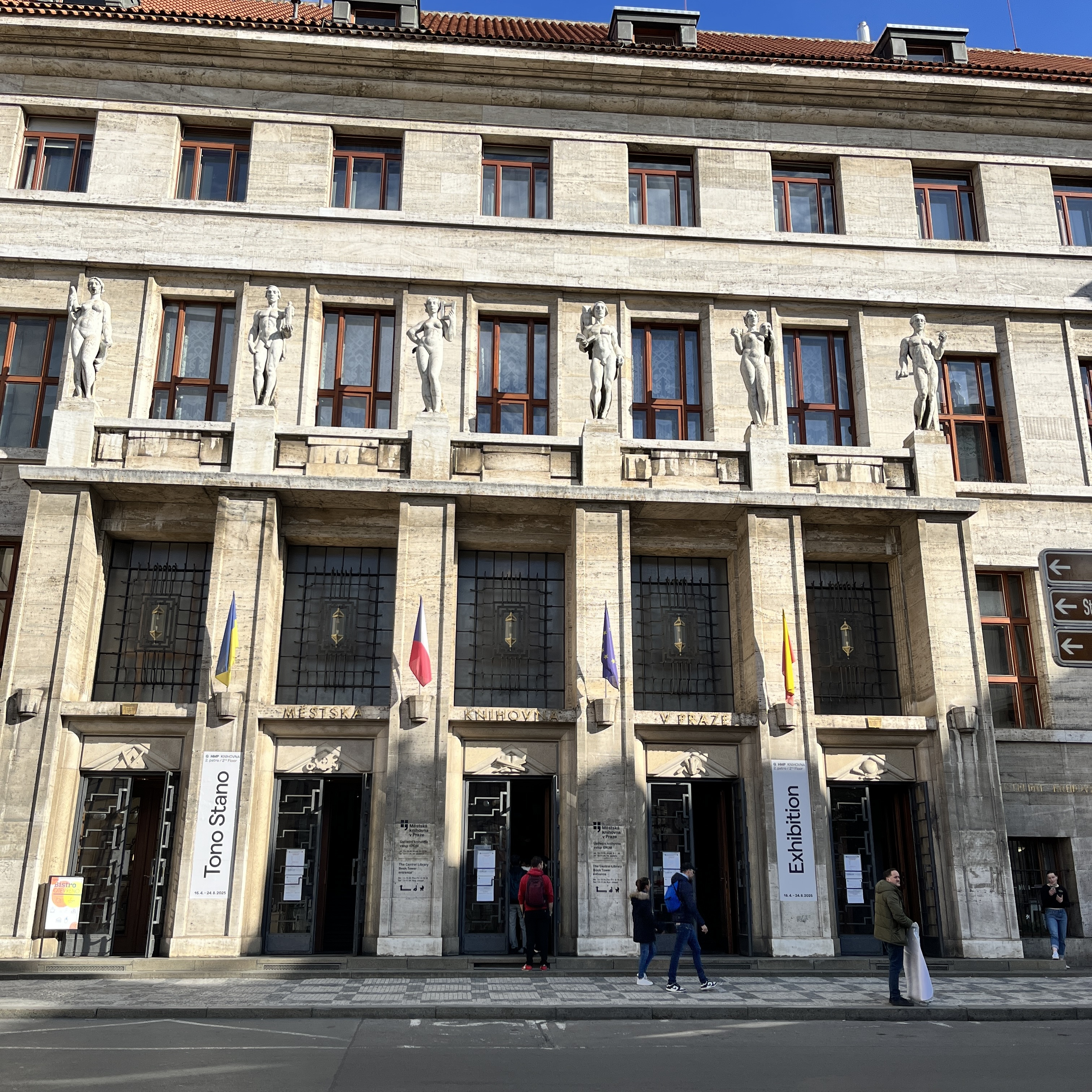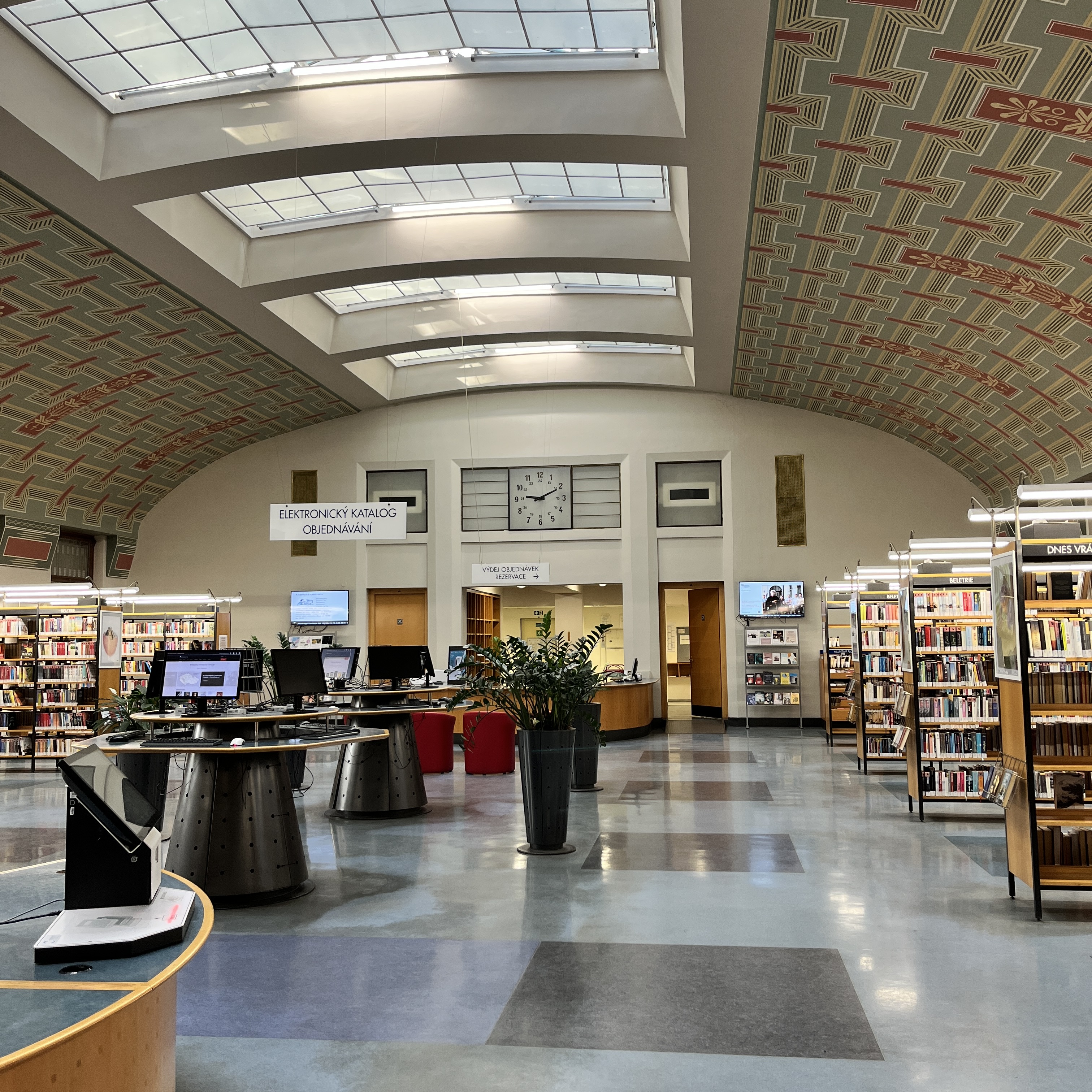 바깥의 웅성거림과 많은 사람들을 뒤로 하고 도서관에 들어서면 조용하고 익숙한 도서관 로비의 모습이 보인다. 전체적으로 크다고는 할 수 없지만 나무로 된 서가와 그곳을 채운 가득한 책, 나무로 된 의자와 책상 등 마음이 편해지는 공간이었다. 프라하에는 시에서 운영하는 시립 도서관이 여러 군데 있다. 프라하 언어로 'Městská knihovna v Praze' 라고 하는데 영어로 'Municipal Library of Prague' 라는 뜻이다. 그리고 내가 이번에 방문한 곳은 여러 지점 중에서도 Central Library, 한국말로 하면 중앙점이라고 할 수 있다. 따라서 프라하 어디에 머물든 구글 지도에 위의 'Městská knihovna v Praze'를 검색하면 자신의 위치와 가장 가까운 도서관을 찾아 방문해 볼 수 있다.