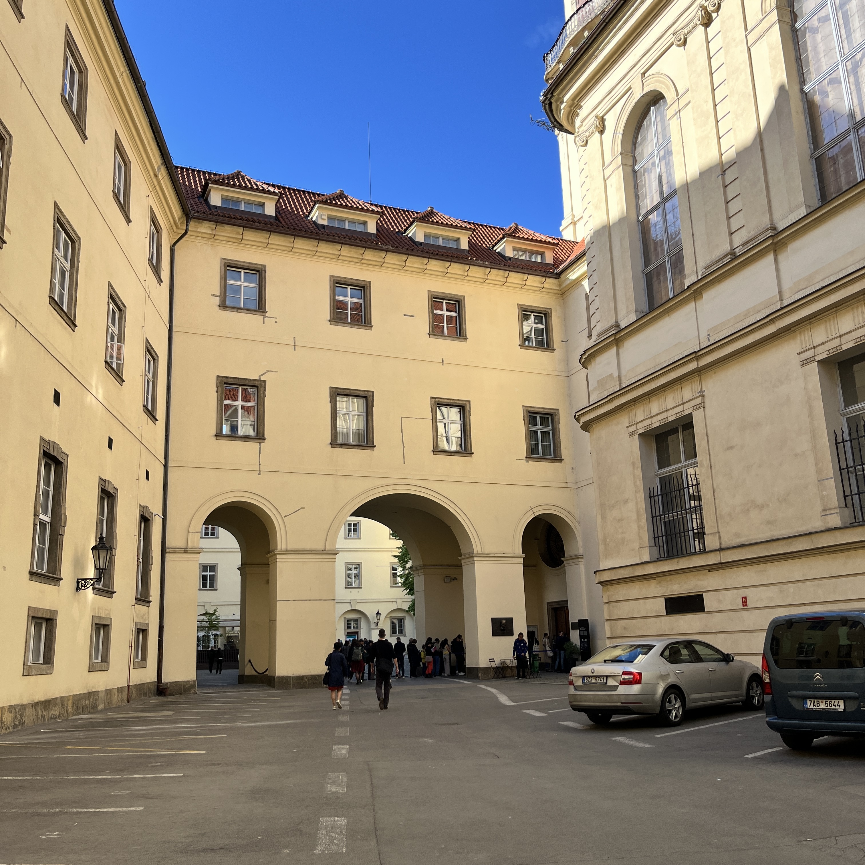 프라하 국립 도서관은 가는 길이 헷갈리기 쉽다. 우선 구글맵을 따라 프라하 시립 도서관 맞은 편에 있는 체코 국립 도서관 입구로 들어간다. 들어가면 본 글 첫 번째 사진과 같이 사람들이 길게 줄 서 있는 모습을 볼 수 있다. 처음에 다들 오픈을 기다리고 있거나 입장권을 구매하려 기다리고 있는 줄 알았는데 알고 봤더니 해당 줄은 '프라하 클레멘티눔 도서관' 방문을 위해 표를 사려고 기다리는 사람들의 줄이었다. '프라하 클레멘티눔 도서관'은 16세기에 만들어져 현재까지 보존되고 있는 오래된 도서관이라고 한다. 한화 약 2만 원 정도면 클레멘티눔 도서관과 천문탑 가이드 투어가 가능하다고 하는데 해당 도서관은 사람들이 이용하는 도서관이 아니라 눈으로 보는 명소라고 해서 나는 이용하지 않았다. 아무튼 저 줄을 지나 오른쪽으로 돌면 바로 위 사진처럼 A라고 적힌, 겉보기에는 다소 평범해 보이는 문이 하나 나오는데 그곳이 체코 국립 도서관 입구다.